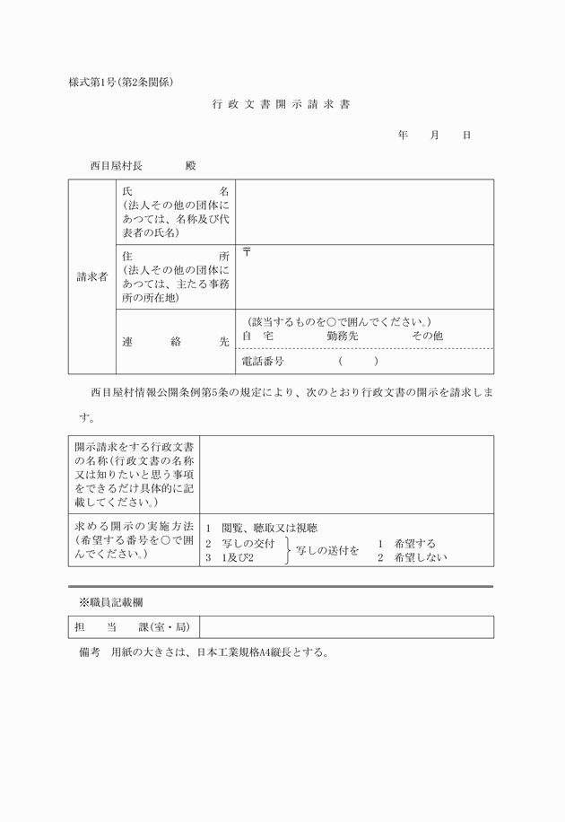 第一条 この規則は、西目屋村情報公開条例(平成十三年条例第十一号。以下「条例」という。)の施行に関し必要な事項を定めるものとする。