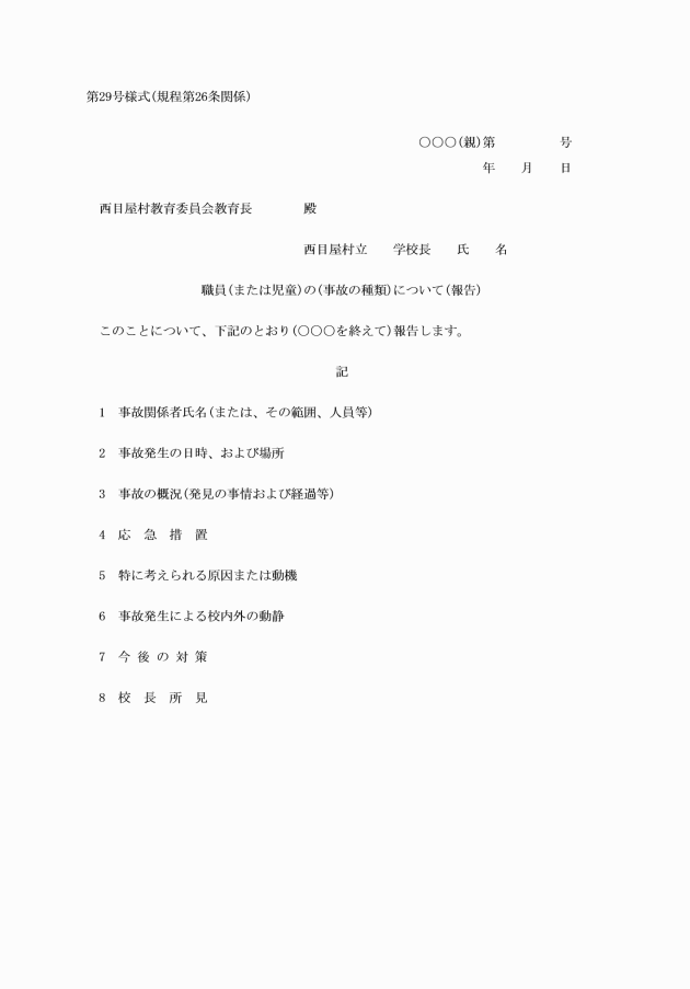 第二十六条 規則第三十一条に規定する事故報告は、事故報告書(第二十九号様式)によるものとする。