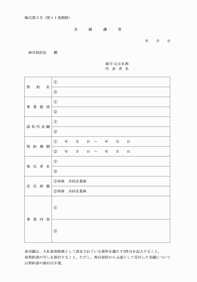 ○西目屋村事後審査型条件付き一般競争入札実施要領